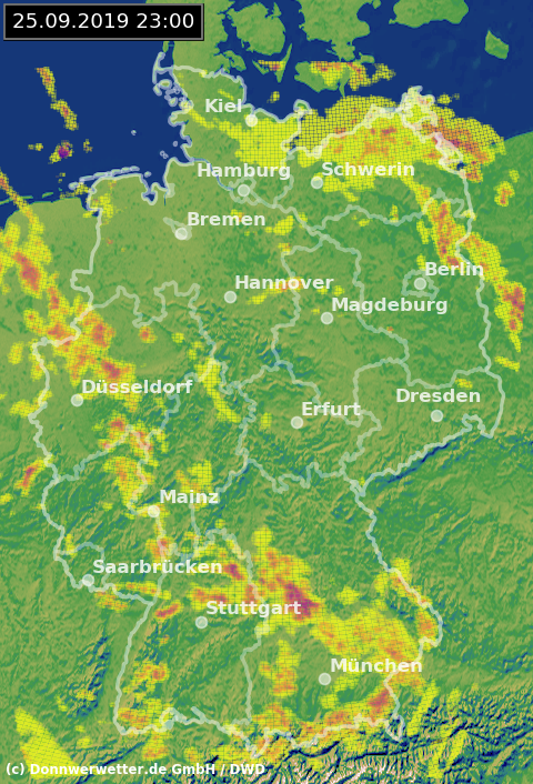 Radarbild von Mittwoch, 25.09.2019 um 23.00 Uhr