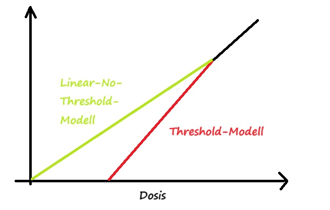 Hier wird, in einem Konzept aus der Strahlenbiologie, zwischen zwei Dosis-Wirkungs-Modellen unterschieden: Dem Linear-No-Threshold-Modell (LNT-Modell) und dem Threshold-Modell.