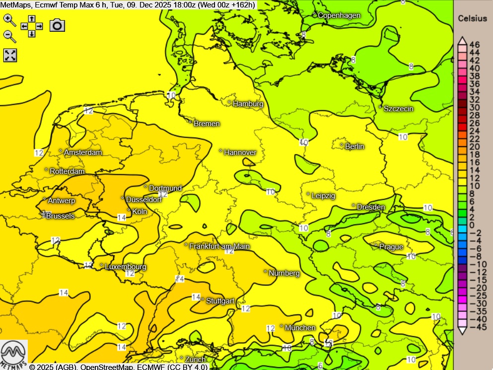 Von winterlichen Temperaturen kann dabei keine Rede sein – im Gegenteil: Bis zum zweiten Adventssonntag steigen die Höchstwerte in weiten Teilen des Landes auf rund 10 Grad. In der ersten Hälfte der kommenden Woche sind im Westen und Südwesten sogar Temperaturen um 15 Grad möglich!