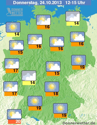 Am Donnerstag gibt es nur in der Mitte noch seltene Schauer. Bei bis zu 19 Grad C im Süden und 14 Grad C im Norden lacht häufiger die Sonne. Am Freitag nähert sich von Westen her ein Regengebiet. Dann gibt es mit Sommerschuhen auch nasse Füsse.