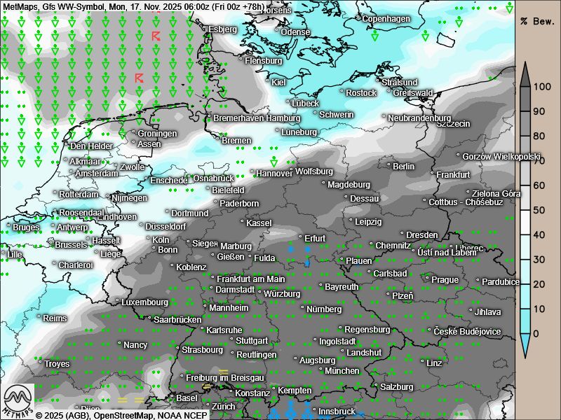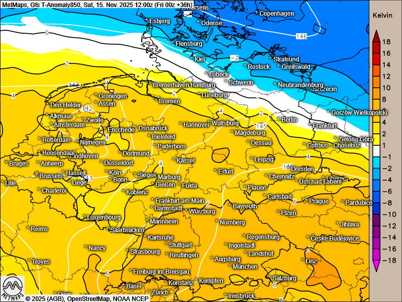 Am Samstag kommt dann im Süden und Westen Regen auf, am Sonntag ziehen die Regengebiete gegen die Alpen ab. Erst am Montagmorgen flutet die Kaltluft Deutschland komplett.