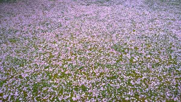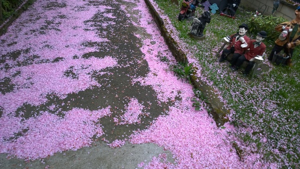 Ein Blütenmeer zeigt sich am Boden. Die Schauer und der starke Wind haben zahllose Blüten von den Mandel- und Kirschbäumen geweht. Das Schauerwetter setzt sich bis Mittwochnachmittag weiter fort.