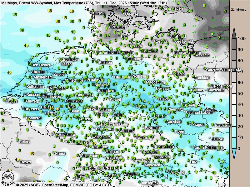 Während die Temperaturen in diesen Tagen wieder "normalere" Werte erreichen, bleibt die Wetterlage insgesamt ruhig: Ein Zwischenhoch bestimmt unser Wetter am heutigen Donnerstag mit Lufttemperaturen meist um die 10-Grad-Marke.