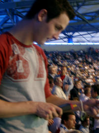 Bisher. Denn das Spiel des MSV-Duisburg gegen Werder Bremen am Mittwoch (3.5.2006) Abend war wahrscheinlich das erste Fußballspiel, das von Meteorologen überwacht wurde. Wir wollten zunächst einmal feststellen, ob es überhaupt Wetterveränderungen in einem voll besetzten Fußballstadion gibt. Denn auf Jahrmärkten und Volksfesten hatte Donnerwetter.de schon Temperaturunterschiede bis zu 8 Grad im Vergleich zum Umland gemessen.